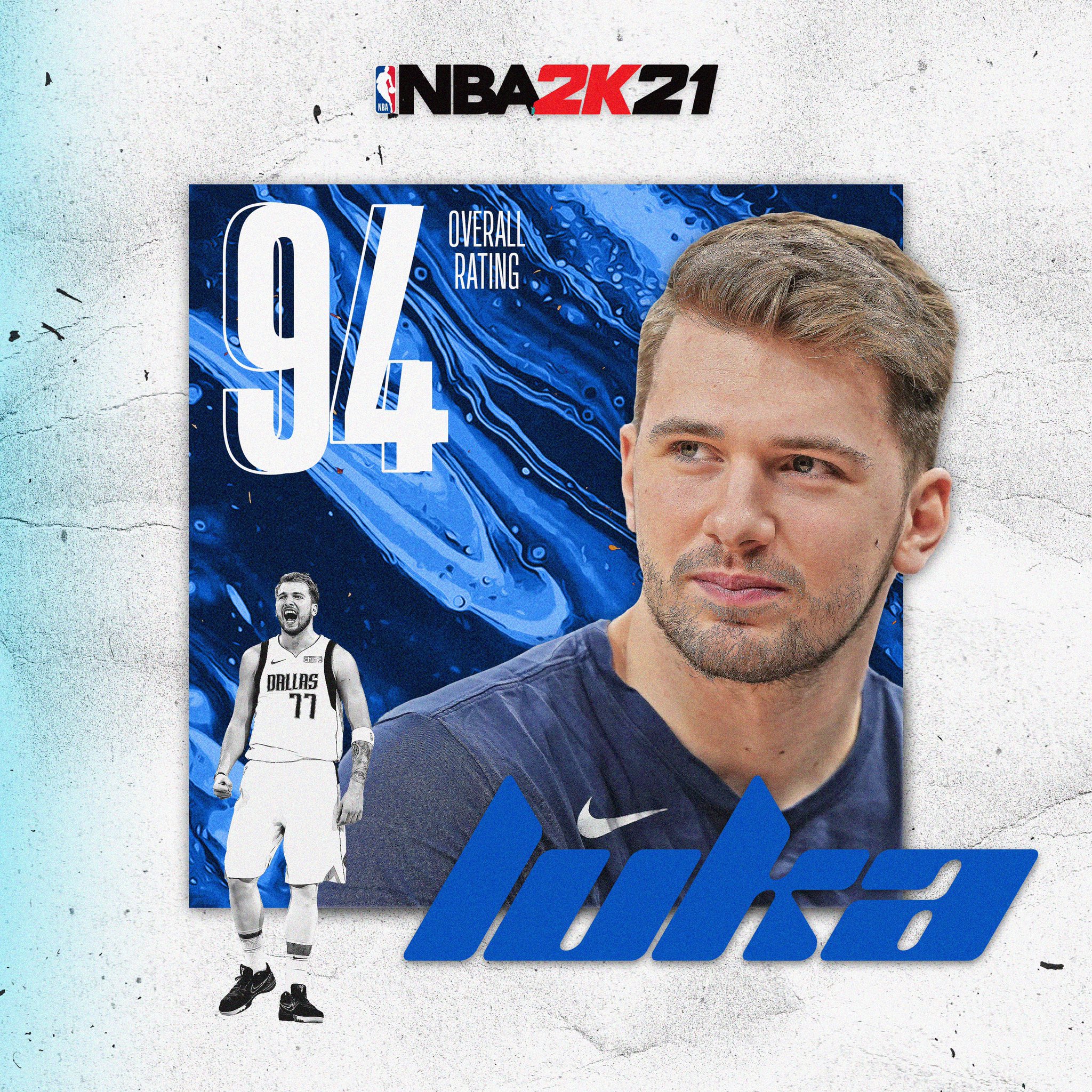 独行侠官推晒部分球员2K21能力值:东契奇94,铂金87