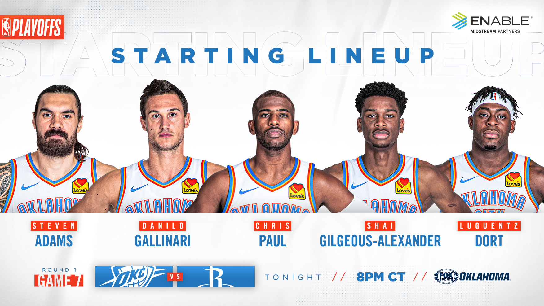 雷霆G7首发:保罗、多尔特、亚历山大、加里纳利和亚当斯