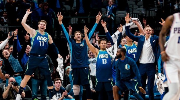 独行侠官推晒替补席庆祝照片:喜欢这支球队就转发吧