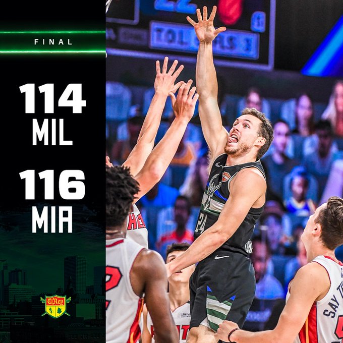快速比分9月3日讯 雄鹿与热火的东部半决赛G2刚刚结束。雄鹿以114-116不敌热火。目前大比分0-2落后与热火。 赛后,美国媒体StatMuse发布了统