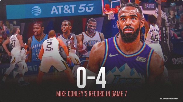 快速比分9月3日讯 爵士昨天在西部季后赛首轮抢七中78-80不敌掘金,遗憾结束了本赛季的比赛。 据媒体Clutch Points统计,这是爵士后卫迈克-康