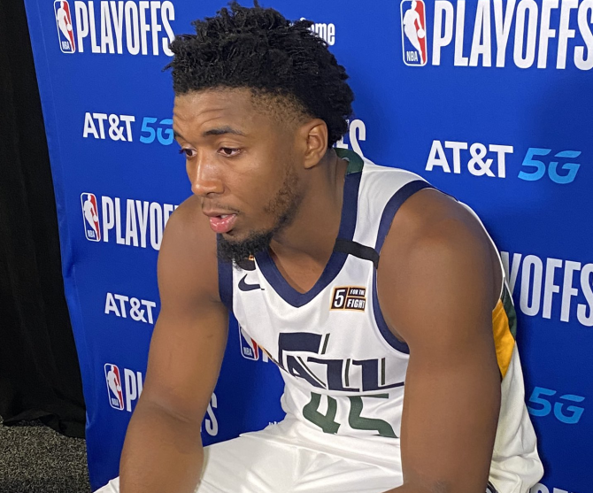 快速比分9月2日讯 今天NBA季后赛爵士客场对阵掘金的比赛已经结束。全场战罢,爵士以(3)78-80(4)不敌掘金。赛后,爵士后卫多诺万-米切尔接受了记者采访。