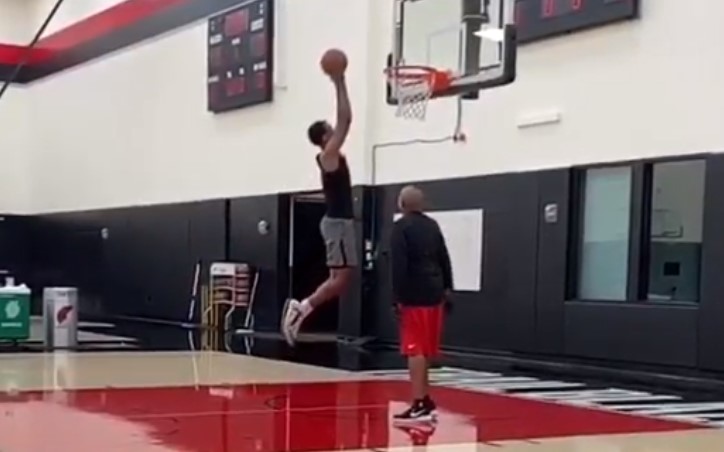 快速比分9月1日讯 今天,开拓者前锋罗德尼-胡德更新Instagram Story,晒出自己在训练中完成空接扣篮的视频。 胡德在2019年12月7日遭遇跟