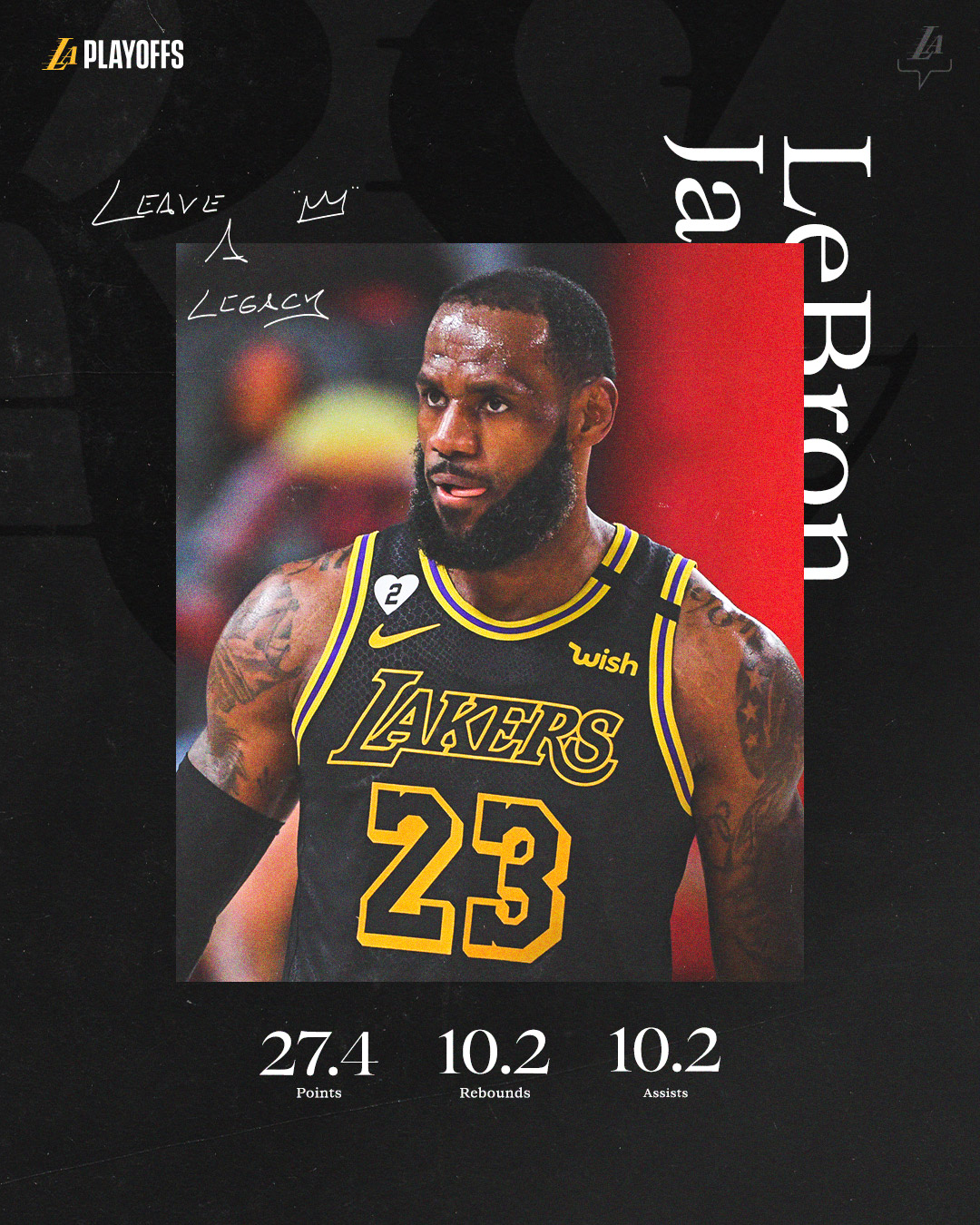 快速比分9月1日讯 湖人官方推特今日发布两张图片总结前锋勒布朗-詹姆斯和安东尼-戴维斯在首轮系列赛的场均数据。 “这两人在首轮系列赛里表现太疯狂了。”湖人