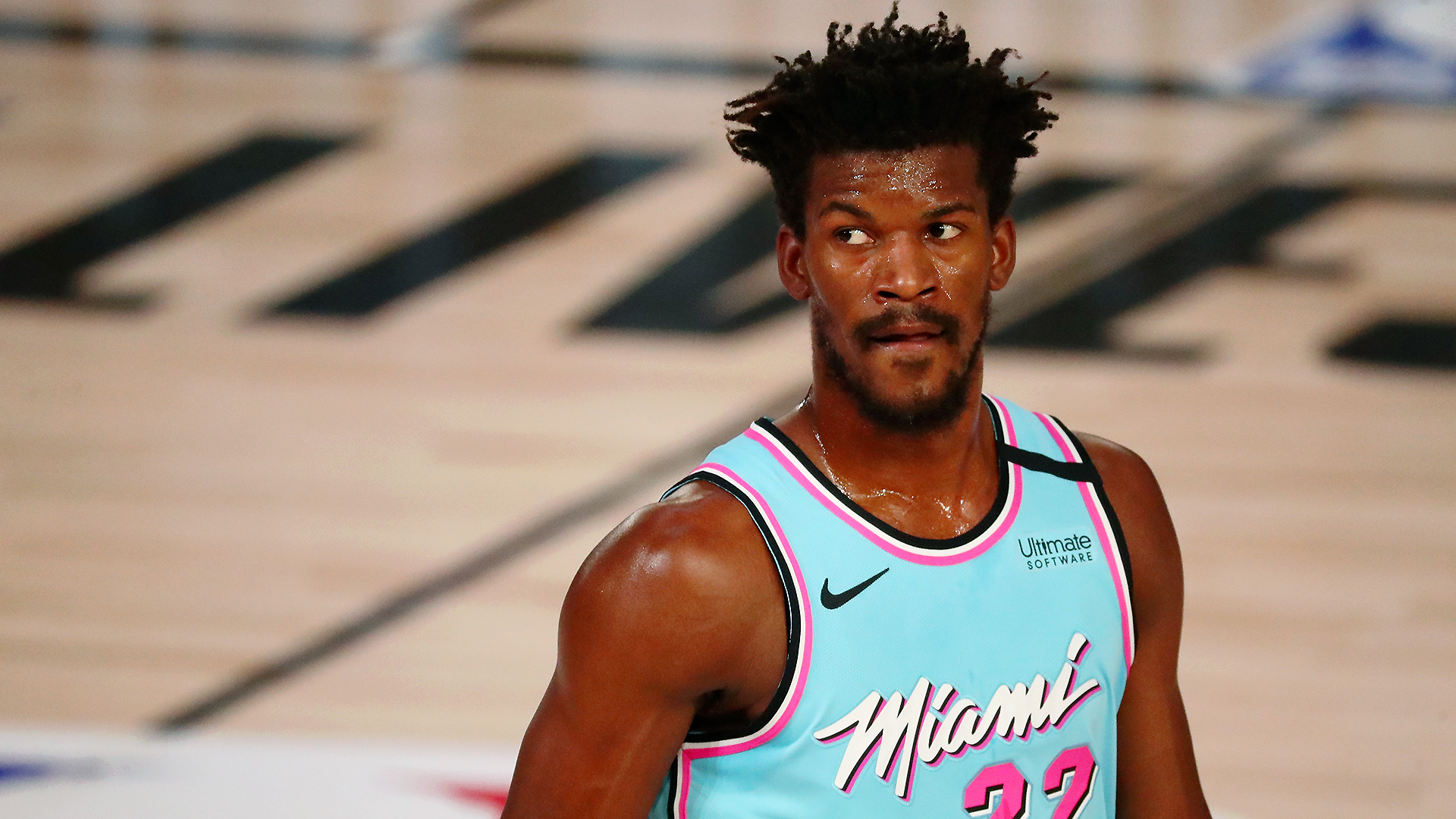 快速比分9月1日讯 今日,雄鹿对阵热火的季后赛正在进行中,目前三节战罢,热火92-86雄鹿。 热火球员吉米-巴特勒在接受采访时谈到了球员可以邀请家人来到园