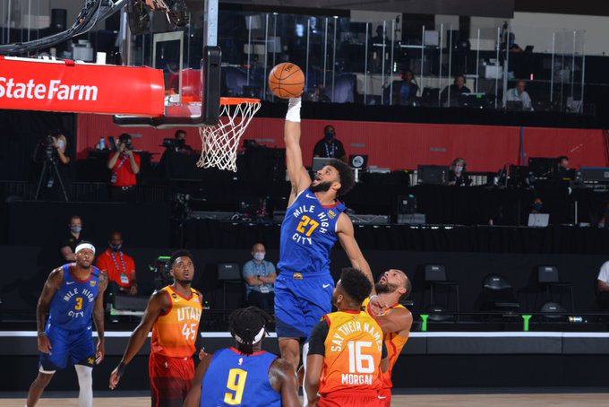 内线优势!掘金上半场抢下24个篮板球,比爵士多10个