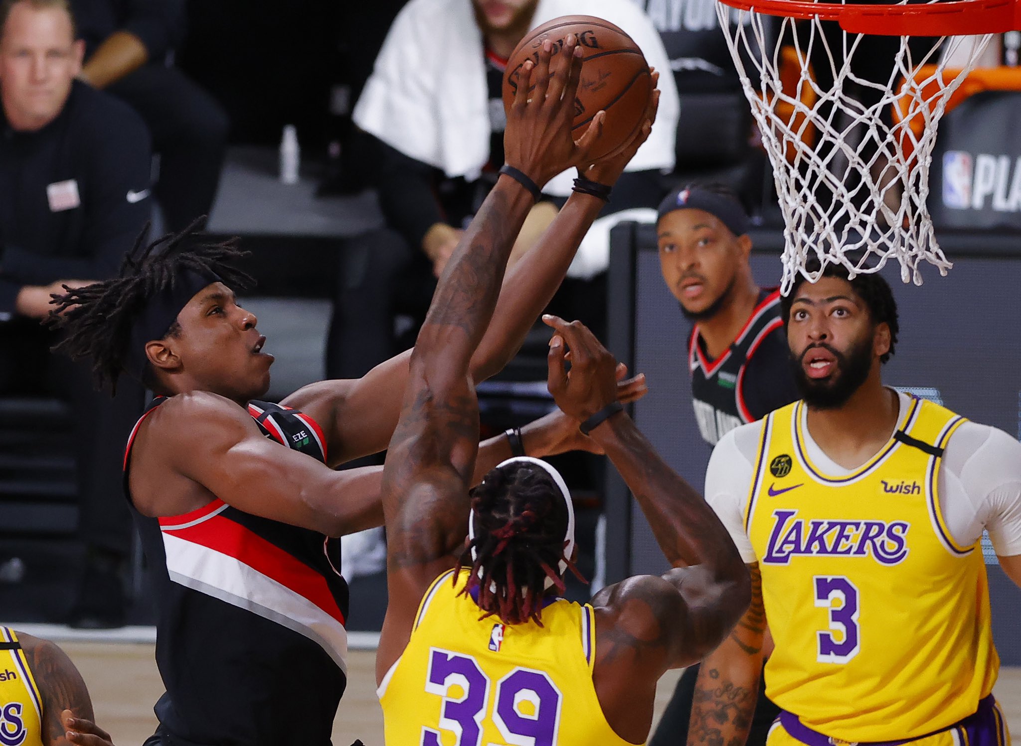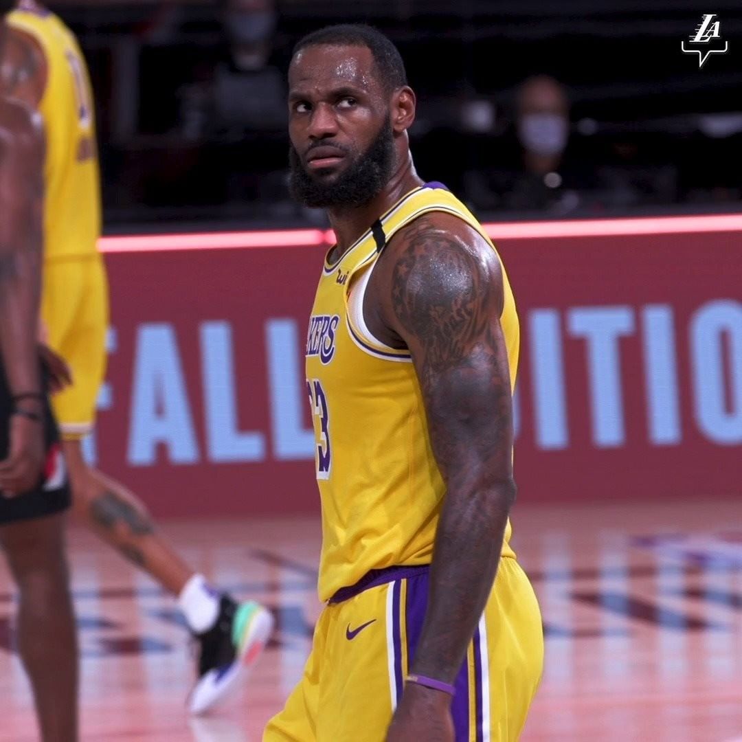 快速比分8月30日讯 在今日结束的一场季后赛中,湖人以131-122击败开拓者,系列赛大比分4-1晋级西部半决赛。赛后,湖人官方Instagram发布了前锋勒布