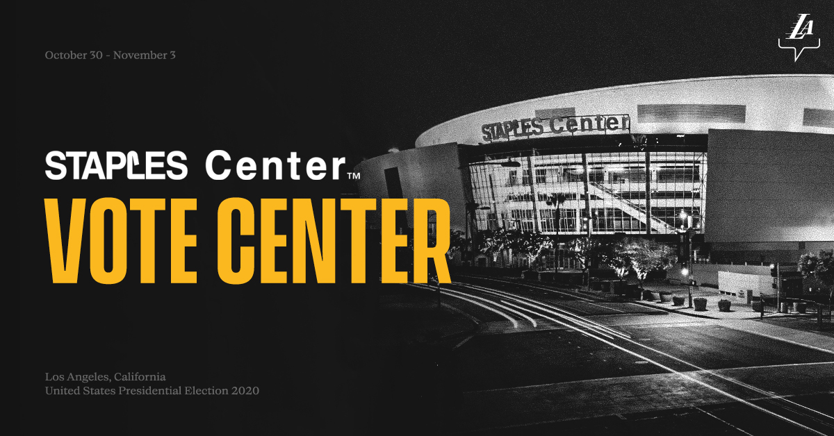 快速比分8月30日讯 今日,湖人官方推特宣布,湖人、斯台普斯中心、AEG集团以及洛杉矶郡书记官联合宣布,斯台普斯中心将在即将到来的总统大选中被用作一处投票中心。