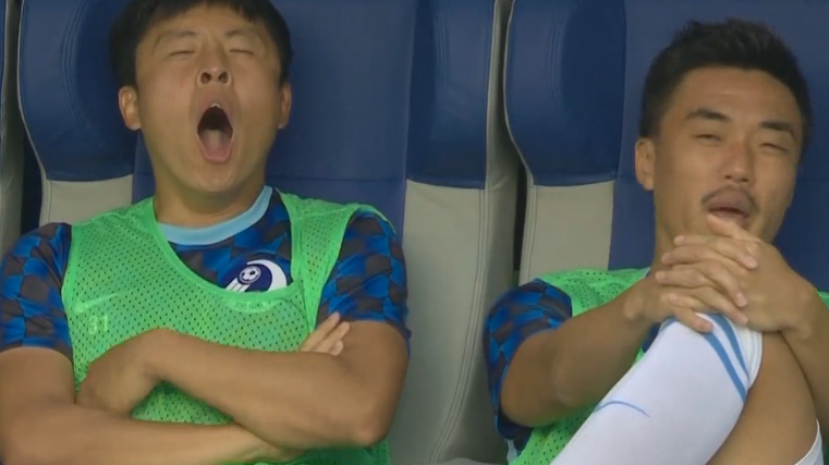 GIF:这球踢得太无聊?郑龙替补席看球看到打哈欠