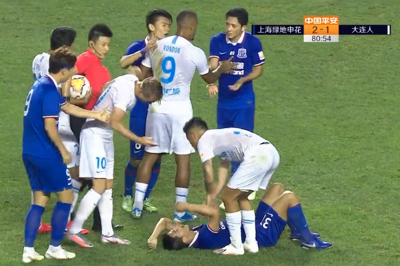 快速比分8月10日讯 今晚, 上海申花在中超联赛中迎战大连人。比赛第81分钟,孙世林在与哈姆西克的对抗中倒地,拉尔森之前上前将其从地上拖起,被黄牌警告。